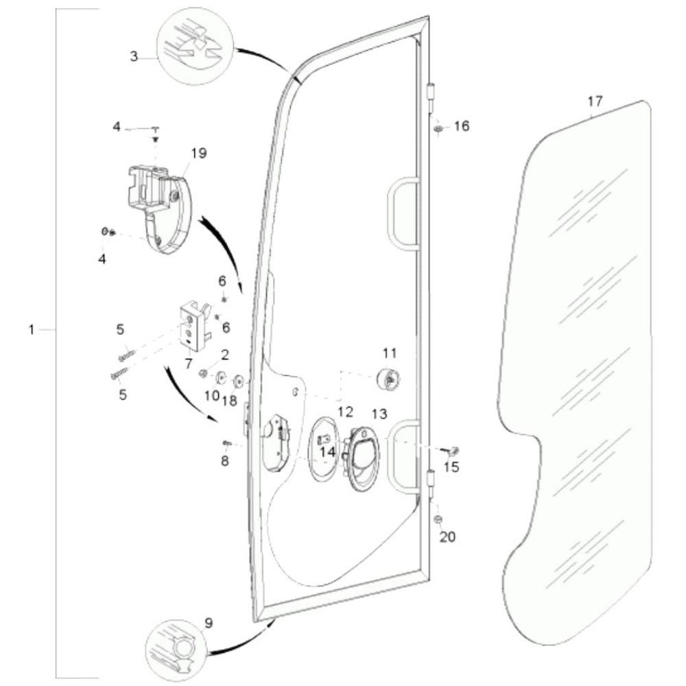 The Door Assembly for the Wacker 6503 Excavator includes essential components to ensure safe and efficient operation. This assembly is crucial for maintaining the integrity of the cab, providing protection from external elements and enhancing operator comfort. Genuine Wacker Neuson parts ensure compatibility and reliability.