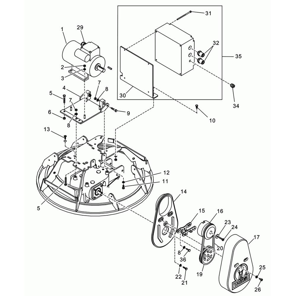 The Drive Assembly for the Wacker CT36EDT Trowel includes essential components to ensure optimal performance and longevity of the electric trowel. This assembly is crucial for transferring power efficiently, enabling smooth operation during concrete finishing tasks. Components such as belts, pulleys, and gears are included, designed to fit seamlessly with the Wacker Neuson model.