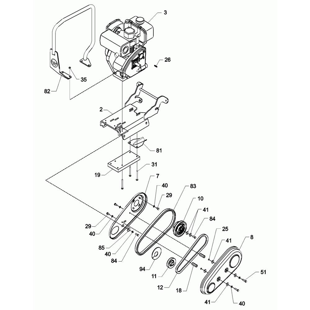 The Drive Assembly for the Wacker VP2050Y Compactor is essential for efficient operation. It includes key components such as belts, pulleys, and gears, ensuring smooth power transmission and optimal performance. Designed for the Wacker Neuson Forward Plate Compactor, this assembly helps maintain the machine's reliability and longevity, making it suitable for various construction tasks.
