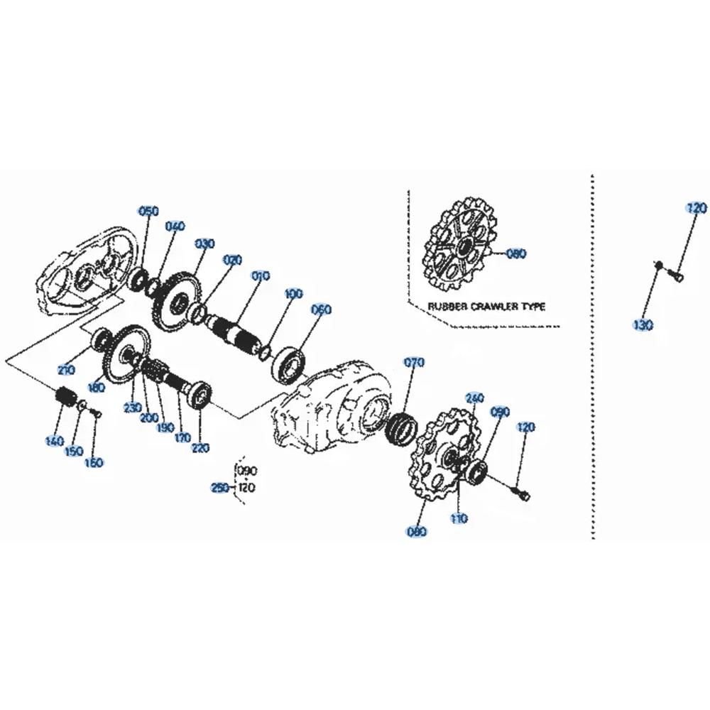 The Drive Gear Assembly for the Kubota KH36 Mini Excavator is essential for efficient power transmission and machine operation. This assembly includes components such as gears, shafts, and bearings, ensuring smooth and reliable performance. Designed for durability, it helps maintain the excavator's functionality and longevity, supporting various construction and landscaping tasks.