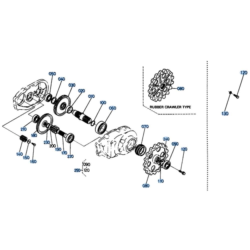 The Drive Gear Assembly for the Kubota KH41 Mini Excavator includes essential components to ensure efficient operation and longevity. This assembly is crucial for transferring power to the tracks, enabling smooth movement and manoeuvrability. Components typically include gears, shafts, and bearings, all designed to withstand the demands of heavy-duty excavation work.