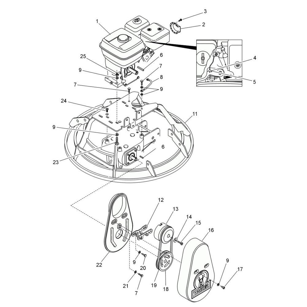The Drive System Assembly for the Wacker CT30AGT Trowel is crucial for optimal performance and longevity. This assembly includes key components such as belts, pulleys, and shafts, ensuring efficient power transmission and smooth operation. Designed for the Wacker Neuson Walk-Behind Trowel, it supports consistent and reliable trowelling on construction sites.