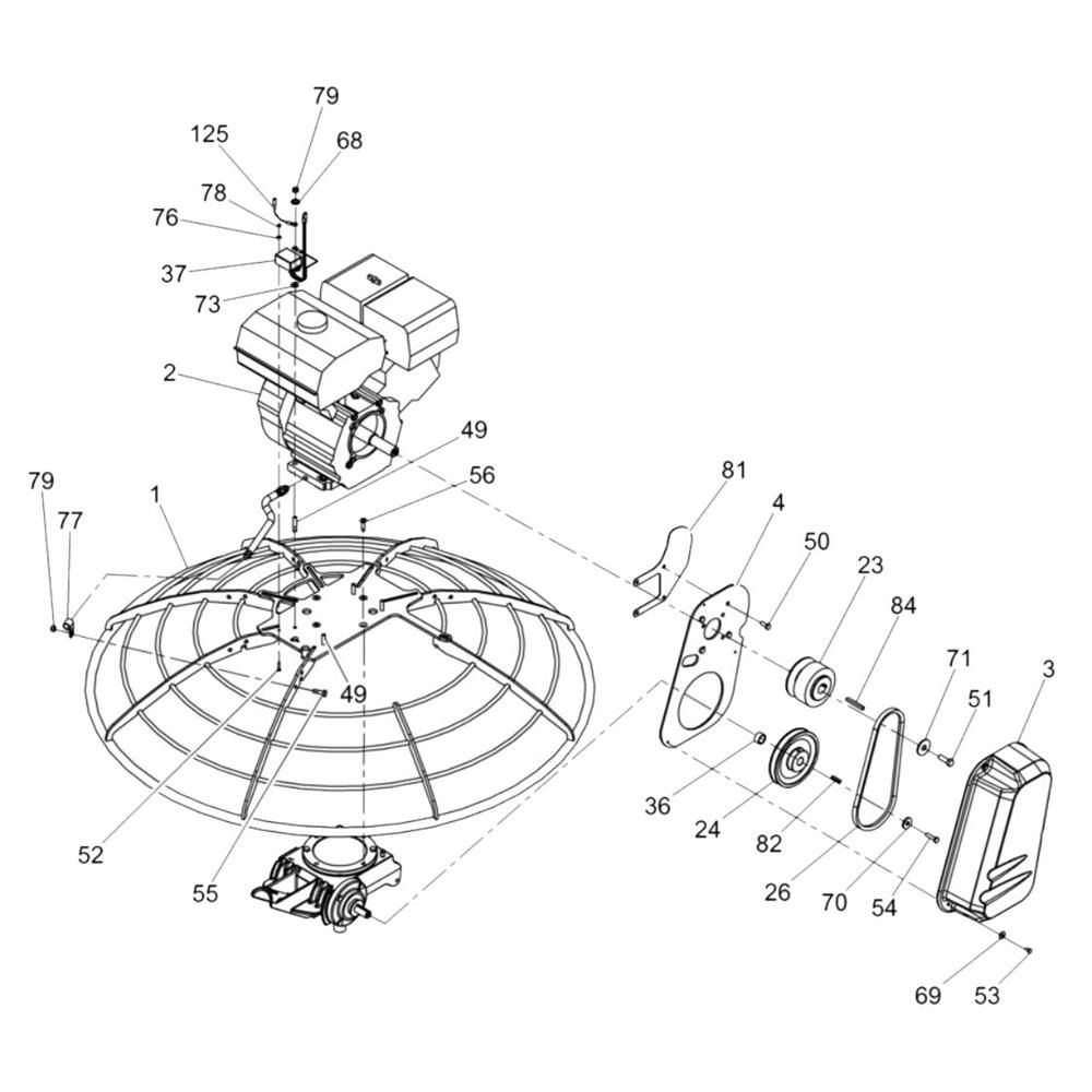 The Drive System Assembly for the Wacker CT36-8 Trowel includes key components essential for optimal operation and performance. This assembly ensures efficient power transmission and smooth operation of the trowel. Typical parts include belts, pulleys, and gears, which are crucial for maintaining the machine's reliability and longevity. Suitable for routine maintenance and repair tasks.