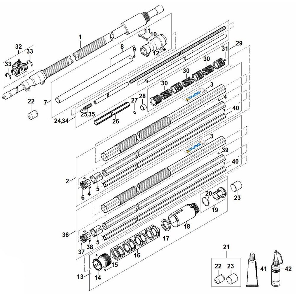 The drive tube assembly for the Stihl HT 135 Pole Pruner is essential for efficient power transmission from the engine to the cutting head. This assembly includes components such as the drive shaft, bearings, and protective casing, ensuring smooth operation and durability. Designed for easy integration and maintenance, it helps maintain the pruner's performance and longevity.