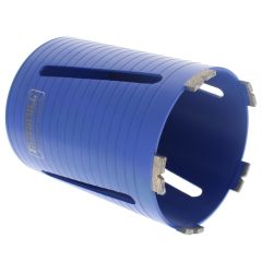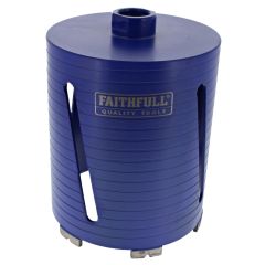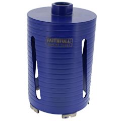 The Faithfull Dry Diamond Core Bit 52 x 150mm is a professional-grade hollow drill bit for fast, accurate core drilling in masonry. Built around a rigid steel barrel with a durable protective coating, it uses premium 8mm fluted turbo diamond segments and V-grooves to cut cleanly while clearing debris. Designed for rotary use only, it is intended for mains-powered drills of 850W and above with a safety clutch and variable speed. The bit has a professional 1/2in BSP thread (approx 21mm OD) for use with standard arbors and extensions. Ideal for trades and DIY, it produces neat, round holes in brick and concrete block for pipework, cables, and fixings where a dry drilling method is preferred. Size: 52mm diameter x 150mm length (2.05in x 5.9in).