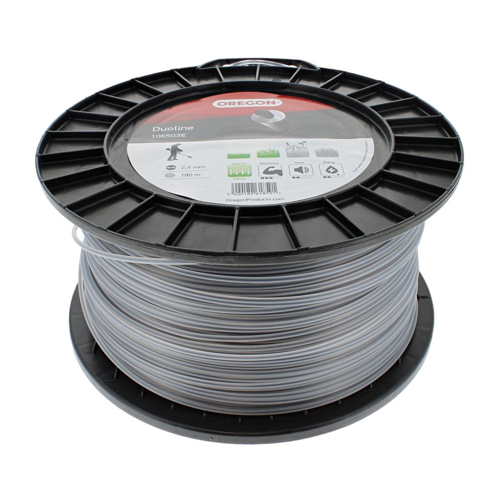 The Duoline 2.4 mm x 180 m spool is a genuine Oregon part, designed to provide high-quality performance for garden and landscaping equipment. Made from durable materials, this trimmer line is engineered for precision cutting and long-lasting use. Ideal for use with a variety of grass trimmers and brush cutters, it ensures efficient trimming and edging of lawns and gardens. With an OEM number of 106503E, this spool is a reliable choice for both professional landscapers and DIY enthusiasts seeking consistent results.