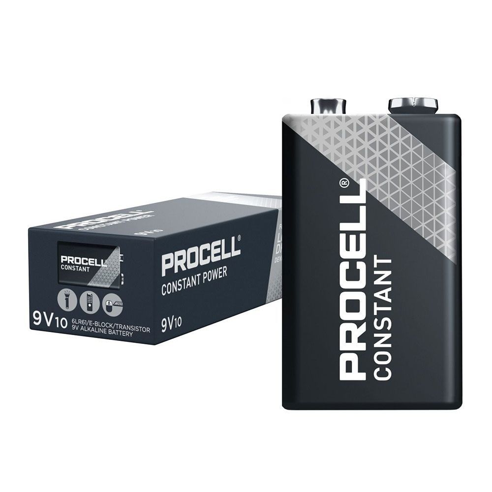 Duracell 9V Alkaline Constant Power Industrial Batteries are non‐rechargeable PP3 (9V) cells supplied in a pack of 10 for dependable everyday use. Built with alkaline chemistry to deliver a steady output, they are suited to low‐drain electronics used around the home, workshop, and jobsite. The rigid can and corrosion‐resistant construction support long, reliable service in devices that need consistent voltage rather than high bursts of current. Typical examples include remote controls, wall clocks, torches, thermostats, safety testers, and handheld instruments. Each battery uses the standard snap (press‐stud) connector common to PP3 devices for quick, tool‐free replacement. From a trusted brand, these cells balance longevity and reliability, making them a practical choice for maintenance teams and general users. Manufacturer Part Number: DURIND9V.