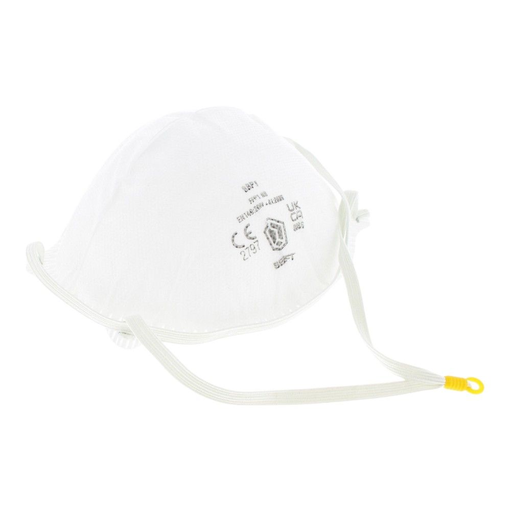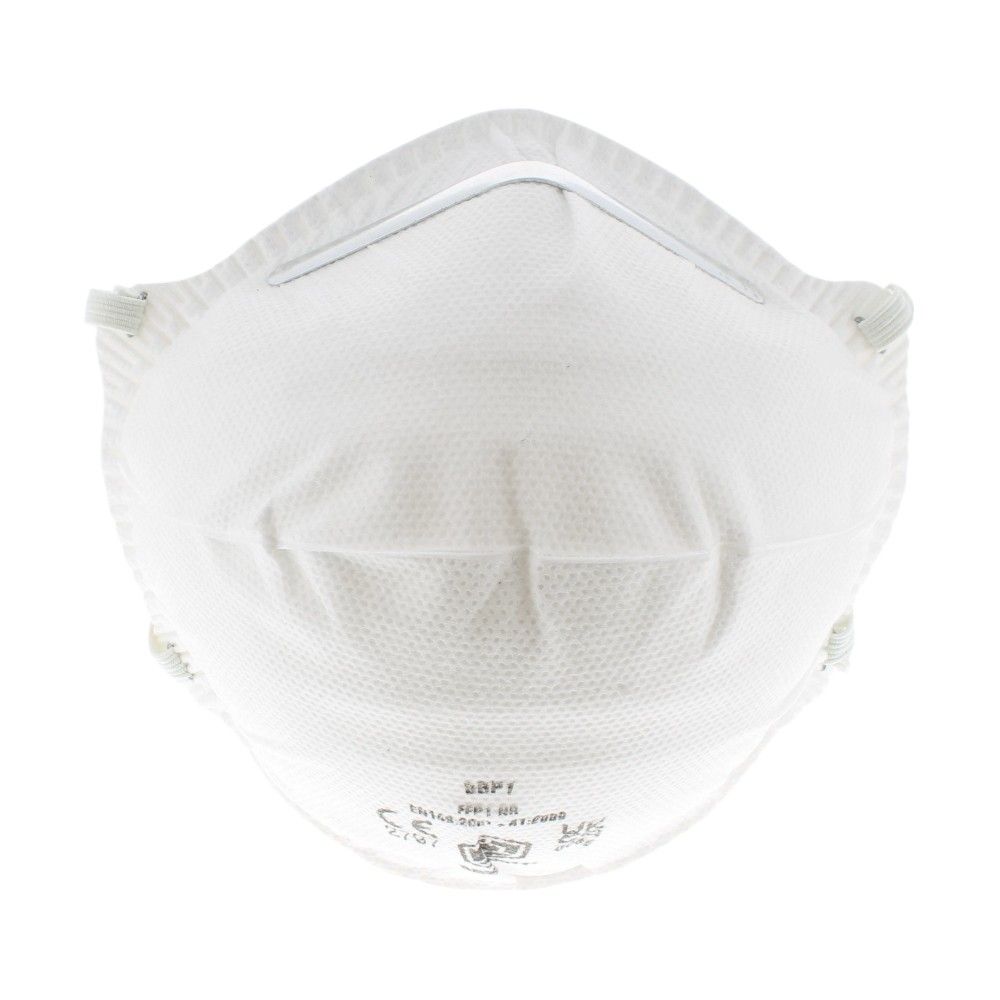 The Beeswift FFP1 Dust Mask with Adjustable Nosepiece (model BBP1) is a disposable particulate respirator designed for low levels of airborne dust and fine particles. It uses a durable, collapse‐resistant double‐shell construction with non‐woven filter media, a latex‐free synthetic rubber head strap, and a soft nose foam pad for comfort. The contoured shape and adjustable nosepiece help achieve a closer seal and work well with most safety glasses or goggles. Rated FFP1 NR under EN149:2001 + A1:2009, it is intended for single‐shift use. Suitable for general site work, workshop tasks, and maintenance around construction and garden machinery where nuisance dust is present from hand tools or power tools like sanders, drills, or cut‐off saws.