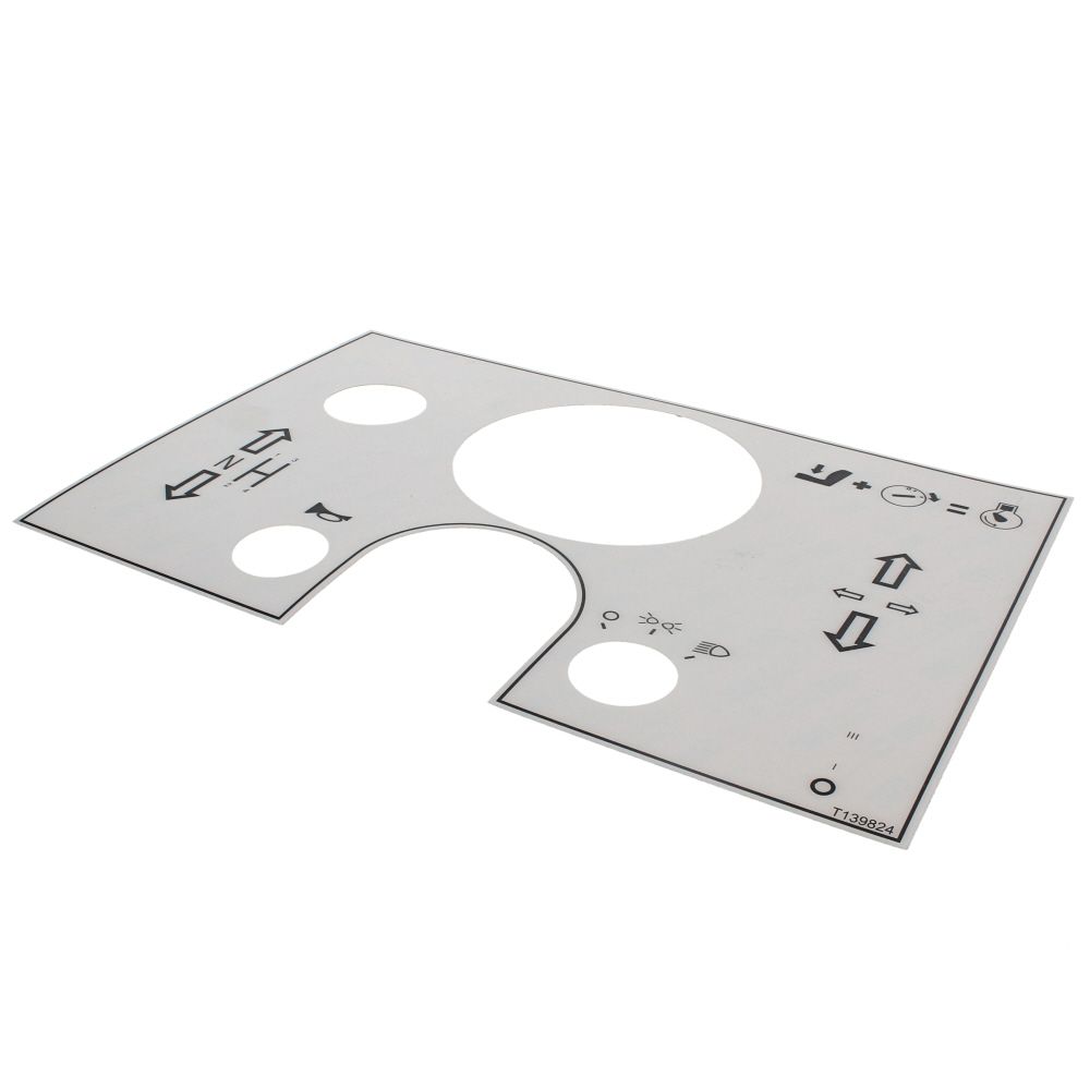 Instrument panel decal, RTA indicator label, dashboard legend sticker, dash overlay, warning light label, control panel sticker, cab fascia decal, operator panel legend, indicator light sticker, dumper dash label.