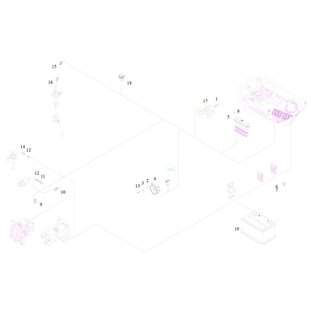 The Electric Assembly for the Wacker TH408 Telehandler includes key components to ensure optimal electrical performance. Designed for maintenance and repair, it supports the telehandler's electrical system, enhancing reliability and efficiency. Typical parts may include wiring harnesses, connectors, switches, and relays, all essential for smooth operation.