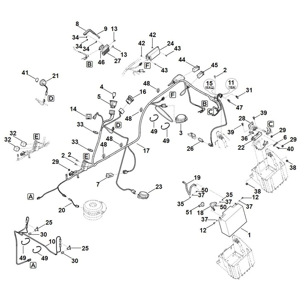 Electric equipment for the Stihl RT 5097.1 Ride on Mower includes essential components to ensure optimal performance and reliability. Designed for efficient operation, these parts help maintain the electrical system, ensuring smooth functionality and longevity. Available options include wiring harnesses, switches, and connectors, tailored for the Stihl RT 5097.1 model.