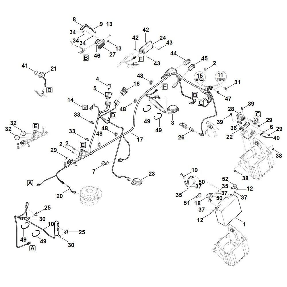 Electric equipment for the Stihl RT 5097.1 Z Ride on Mower includes key components to ensure optimal performance and reliability. Designed for efficient operation, these parts help maintain the mower's electrical system, supporting functions such as ignition and lighting. Genuine Stihl parts are available to suit various maintenance needs, ensuring compatibility and durability.