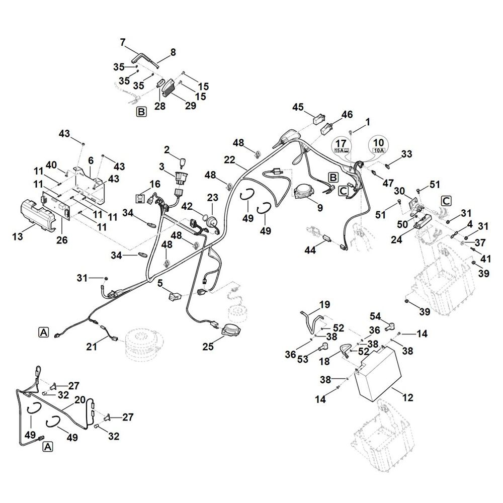 Electric equipment for the Stihl RT 6127.1 ZL Ride on Mower includes components essential for maintaining optimal performance. Designed to ensure efficient operation, these parts help manage the mower's electrical systems, contributing to reliable starting and smooth running. Options include wiring harnesses, switches, and connectors, all crafted to fit seamlessly with the Stihl RT 6127.1 ZL model.