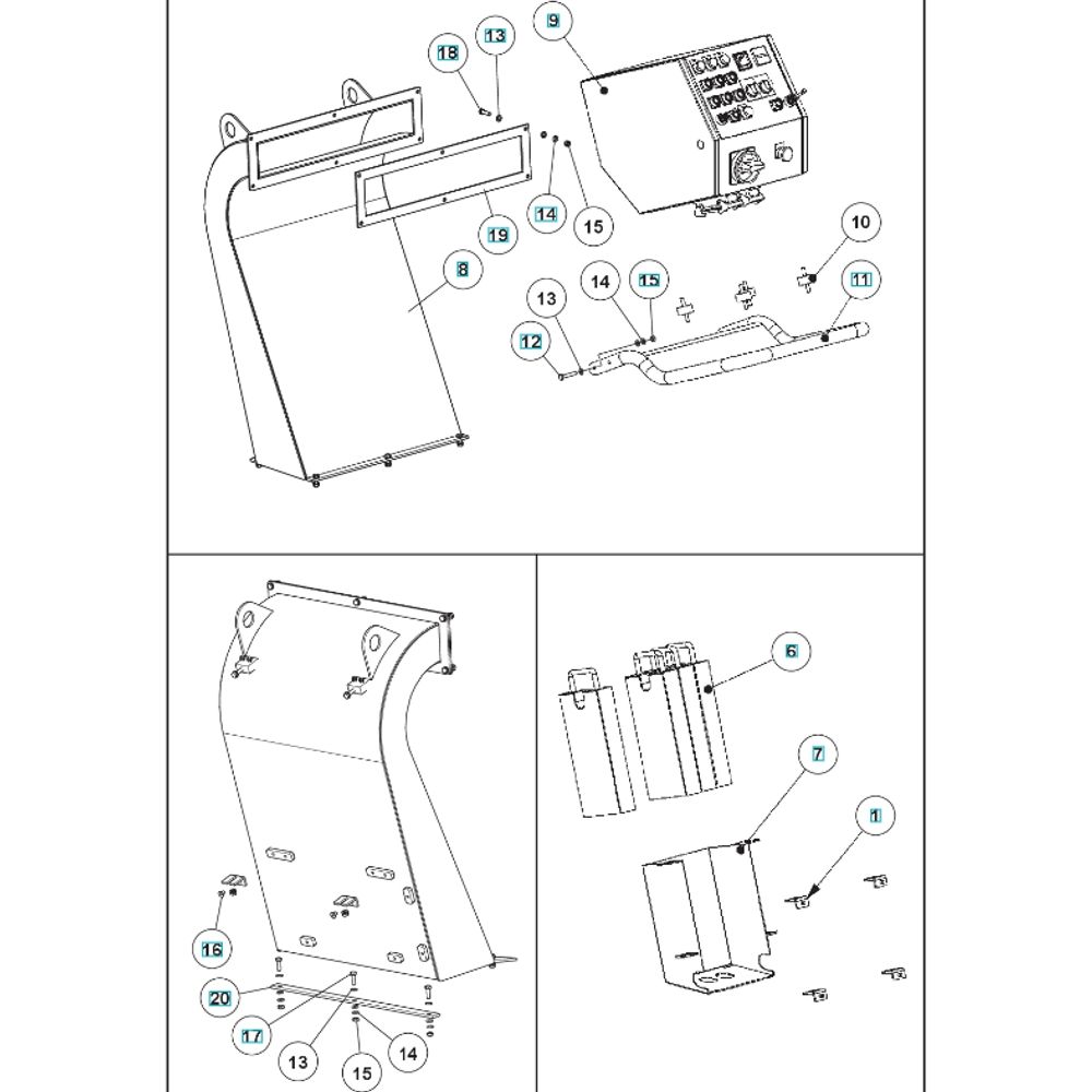 The Electrical Assembly 2 for the Husqvarna BLASTRAC EBE 500 Steel Shot Blaster includes essential components to ensure efficient operation. Designed to support the machine's electrical system, it helps maintain performance and reliability. Components may include wiring, connectors, switches, and circuit boards, all crucial for optimal functionality.