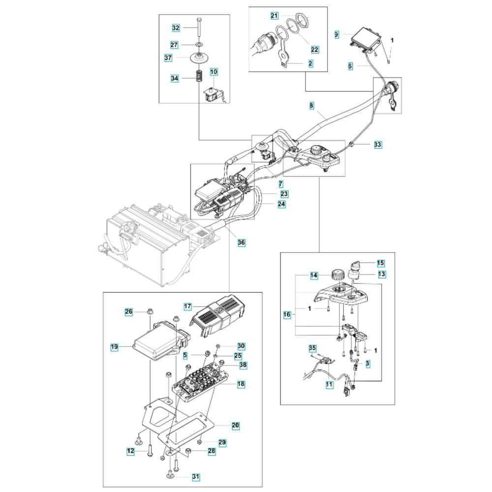The Electrical Assembly for the Husqvarna R 200iX Ride-On Mower includes key components to ensure efficient operation. This assembly is crucial for maintaining the electrical system, providing power distribution and control. Typical parts include wiring harnesses, switches, connectors, and relays, all designed to fit seamlessly with the Husqvarna R 200iX model.