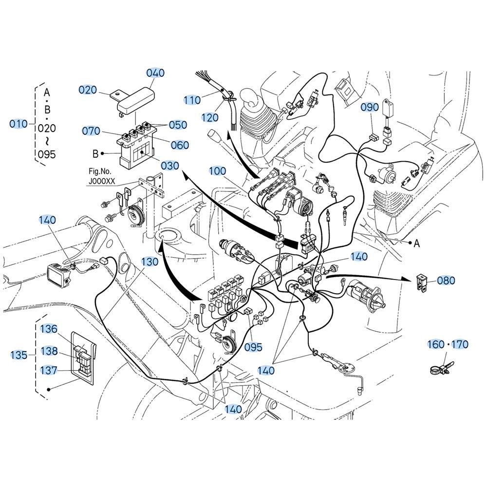 The Electrical Assembly for the Kubota U10-5 Mini Excavator includes vital components to ensure optimal machine performance. This assembly is crucial for maintaining the electrical system's efficiency and reliability. Components such as wiring harnesses, connectors, and switches are included, providing essential support for the excavator's operations.