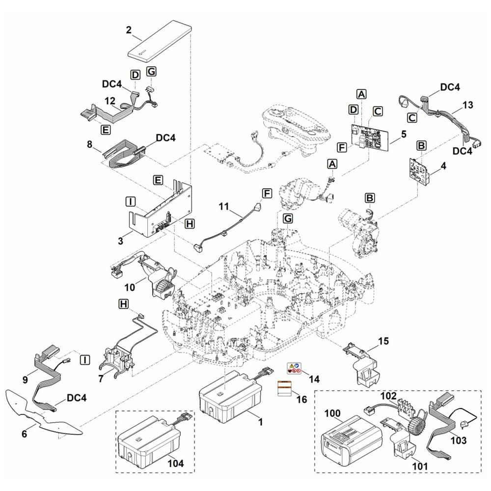 The Electrical Assembly for the Stihl RMI 632.0 P Robotic Mower includes essential components to ensure efficient operation. Designed to support the mower's electrical system, it helps maintain optimal performance by providing reliable power distribution. Key components may include wiring harnesses, connectors, and circuit boards, all crucial for the mower's functionality.
