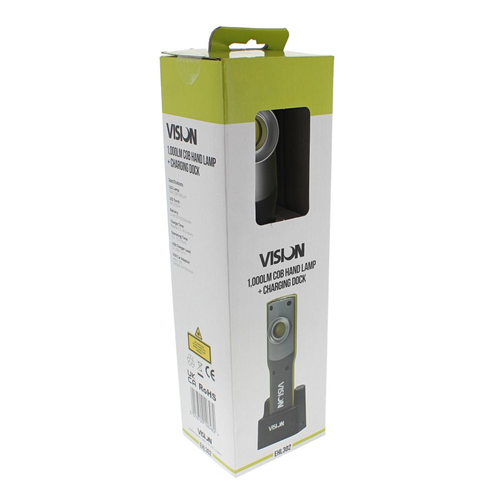 The COB Hand Lamp 1000lm with Charging Dock is a robust, rechargeable work light for workshops, garages, site cabins, and mobile service vans. It uses chip-on-board LED technology to deliver a bright, even beam for detailed tasks. Built from aluminium, polycarbonate, and rubber, it withstands day-to-day knocks and oily environments. A 10W COB panel provides up to 1,000 lumens for area lighting, while a separate 3W LED torch outputs 220 lumens for focused inspection. Supplied with a wall-mountable docking station and USB charging options, it suits bench use and on-the-go charging. Integrated hook and strong rear magnets enable hands-free positioning on metal surfaces. Rated IP54 for dust and splash resistance, UKCA and RoHS compliant, and supplied as a Genuine Part for reliable performance.