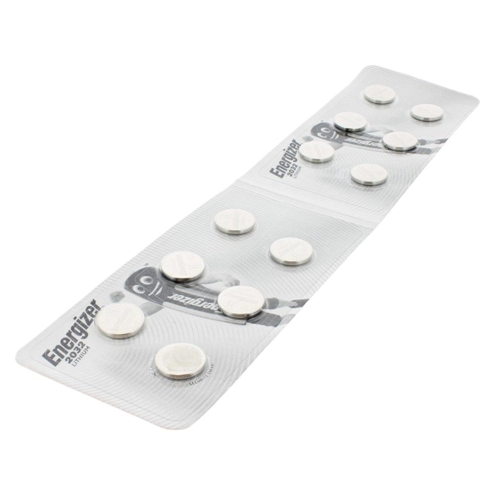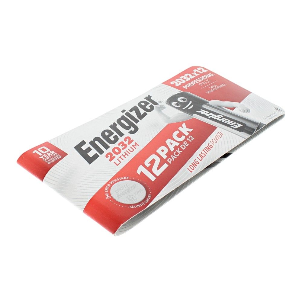 Energizer CR2032 Lithium Batteries - Pack of 12 are genuine 3V coin cells for small electronics used on site, in the workshop, and at home. Each cell uses lithium chemistry in a sealed, silver-coloured metal coin casing, built to the CR2032 standard (about 20 mm diameter and 3.2 mm thickness). They deliver steady voltage for dependable operation in low-drain devices. Typical uses include calculators, watches, remote controls, car key fobs, bike computers, digital callipers, laser levels, thermostats, alarms, and digital scales. The 12-pack makes it easy to keep spares ready for routine maintenance or replacements. This is a Genuine Energizer Part for consistent quality and fit wherever this size is specified.