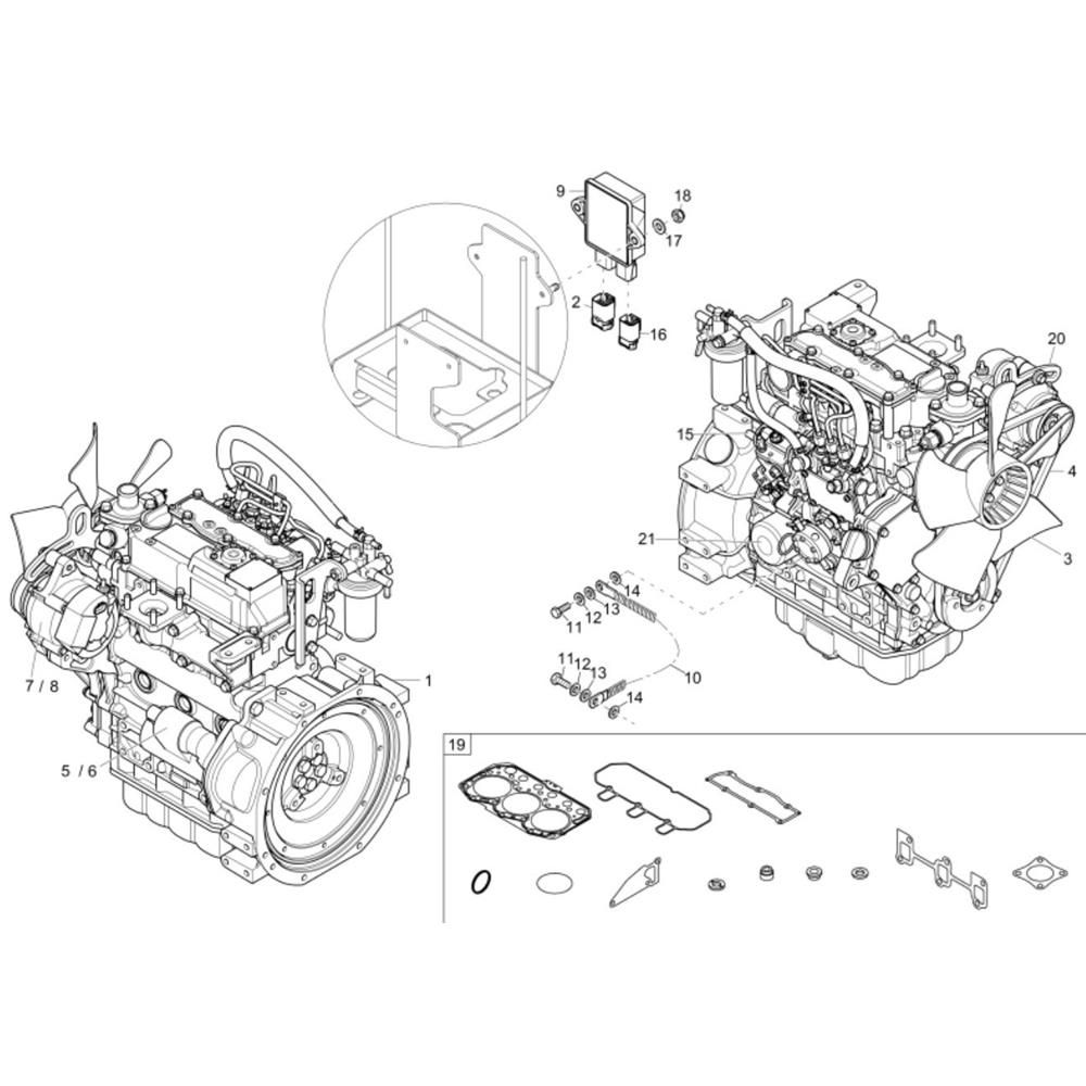 The Engine (3TNV74F) Assembly for the Wacker 803 Mini Excavator includes key components to ensure optimal performance and longevity. This assembly is crucial for maintaining the excavator's efficiency, providing reliable power and reducing downtime. Components may include pistons, gaskets, and seals, all designed to fit seamlessly with the Wacker Neuson system.