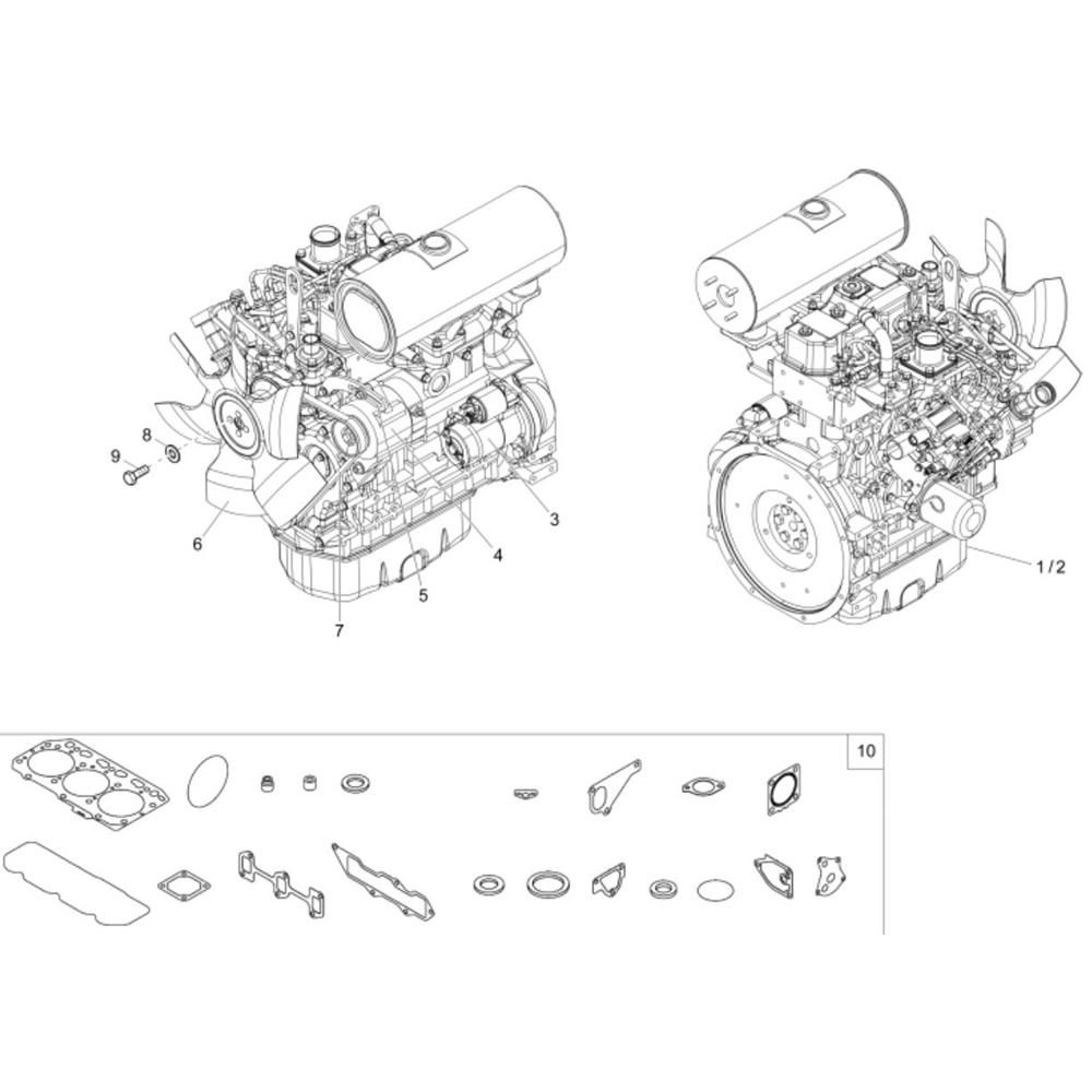 The Engine Assembly for the Wacker ET35 Mini Excavator features essential components to ensure optimal performance and longevity. Designed for the 3TNV88 engine model, this assembly includes parts such as gaskets, pistons, and crankshafts. These components work together to deliver reliable power and efficiency for excavation tasks.
