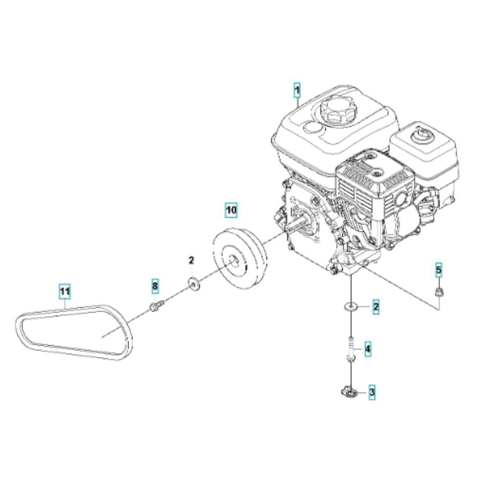 The Engine Assembly for the Husqvarna LFV 100 Compactor includes key components necessary for optimal operation and longevity. This assembly ensures efficient power delivery and reliable performance, essential for compacting tasks. Components such as pistons, gaskets, and valves are included, providing a comprehensive solution for maintenance and repair needs.
