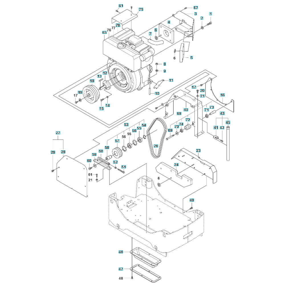 The Engine Assembly for the Husqvarna LG 504 Reversible Compactor is designed to ensure optimal performance and longevity. This assembly includes key components such as gaskets, pistons, and valves, which work together to provide efficient power and reliability. Regular maintenance with genuine parts helps in reducing wear and tear, ensuring the compactor operates smoothly in demanding conditions.
