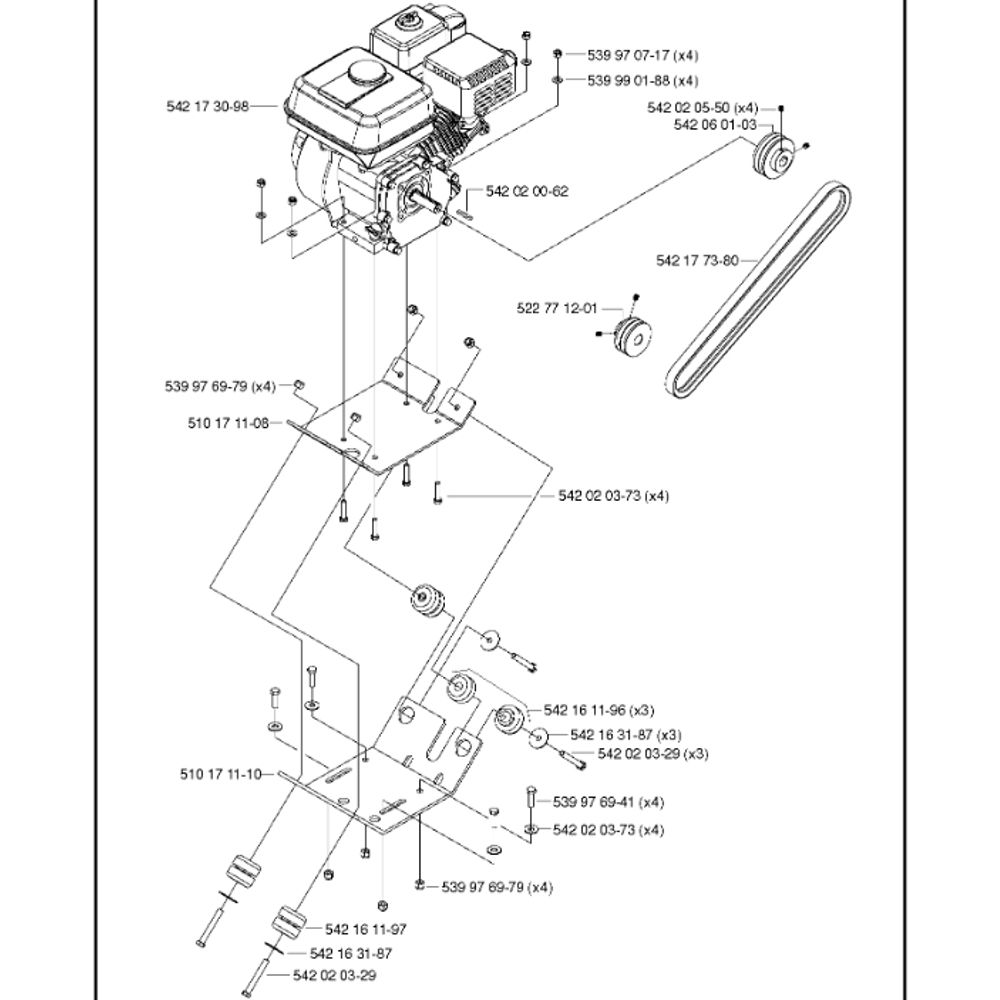 The Engine Assembly for the Husqvarna MS 355 G Masonry Saw includes vital components to ensure optimal performance and longevity. This assembly is crucial for maintaining the saw's efficiency and includes parts such as gaskets, pistons, and crankshafts. Designed for durability, these genuine Husqvarna parts help in reducing wear and tear, ensuring reliable operation during masonry tasks.
