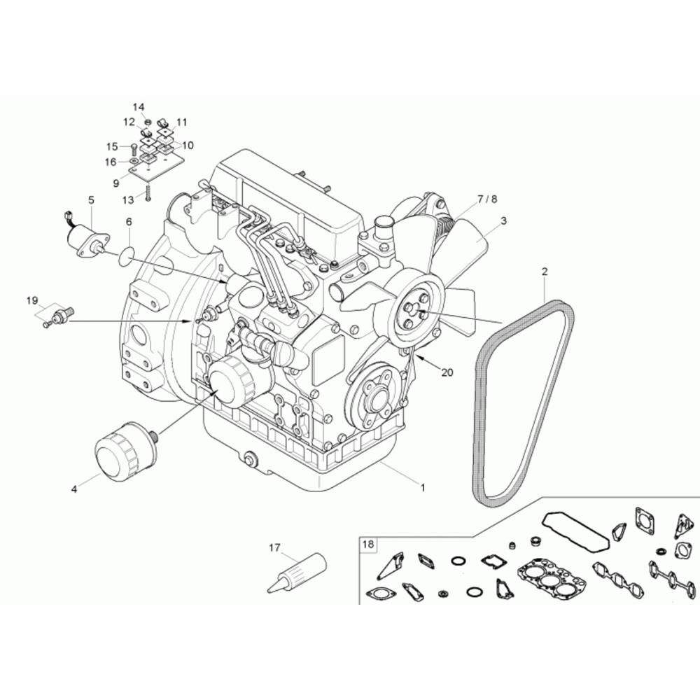 The Engine Assembly for the Neuson 1001 Dumper includes key components necessary for optimal machine performance. This assembly ensures efficient operation by integrating parts such as pistons, gaskets, and valves, which are crucial for maintaining engine integrity and power. Designed for the Neuson 1001 model, these genuine Wacker Neuson parts provide reliability and durability in demanding construction environments.