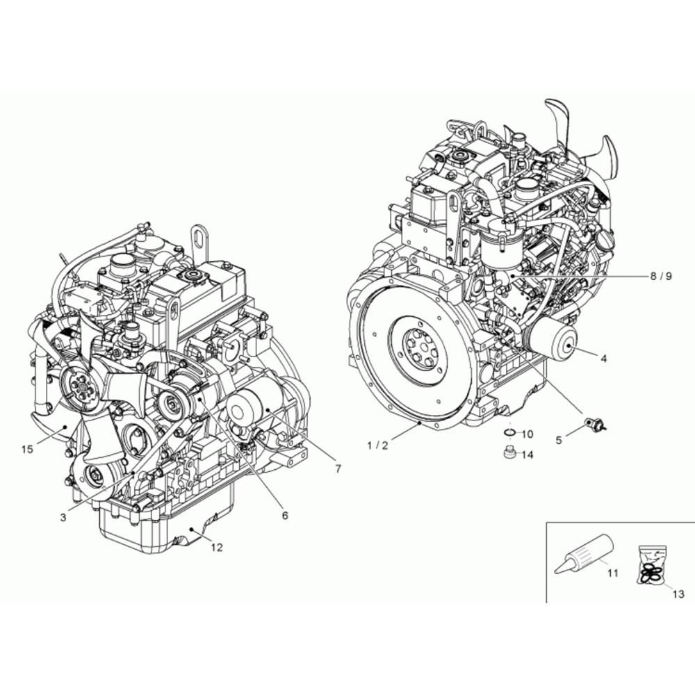 The Engine Assembly for the Neuson 2001 Dumper includes key components necessary for optimal performance and longevity. This assembly is designed to ensure efficient operation by maintaining engine integrity and reducing wear. Typical parts include gaskets, pistons, and valves, all crucial for the dumper's functionality. Genuine Wacker Neuson parts ensure compatibility and reliability, supporting routine maintenance and repairs.
