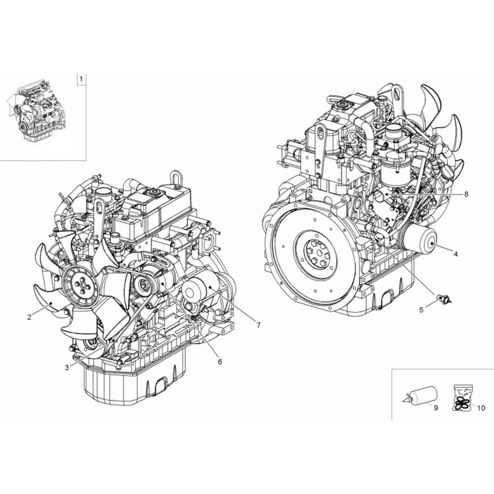 The Engine Assembly for the Neuson 3001 Dumper includes key components essential for optimal performance and longevity. Designed for the Wacker Neuson model, this assembly ensures efficient operation and reliability. Typical parts include pistons, gaskets, and valves, all crucial for maintaining engine integrity and power delivery.