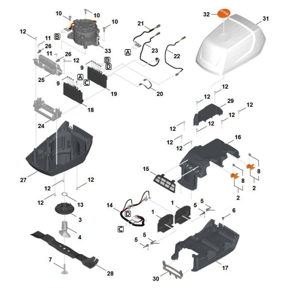 This Engine and Blade Assembly for the Stihl RMA 7.0 RV Lawn Mower includes key components to ensure optimal cutting performance and engine efficiency. Designed for seamless integration, it features genuine Stihl parts that enhance durability and reliability. Typical components include blades, engine parts, and fasteners, all contributing to a well-maintained lawn mower.