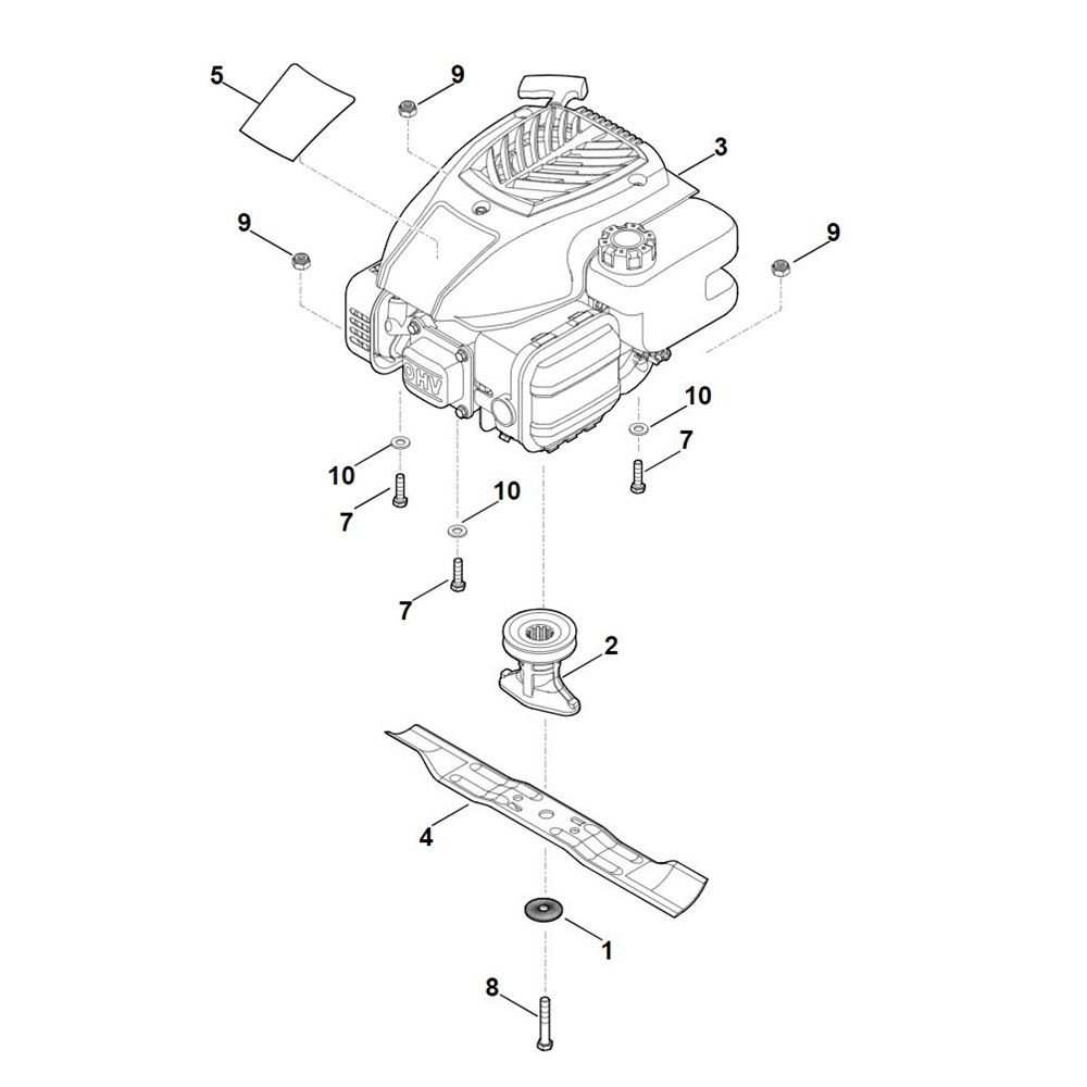 The engine and blade assembly for the Stihl RM 248.1 Mower includes genuine Stihl parts designed to ensure optimal performance and longevity. This assembly is crucial for maintaining efficient cutting and reliable operation. Components such as the engine and blade are available, providing options for replacement and maintenance.