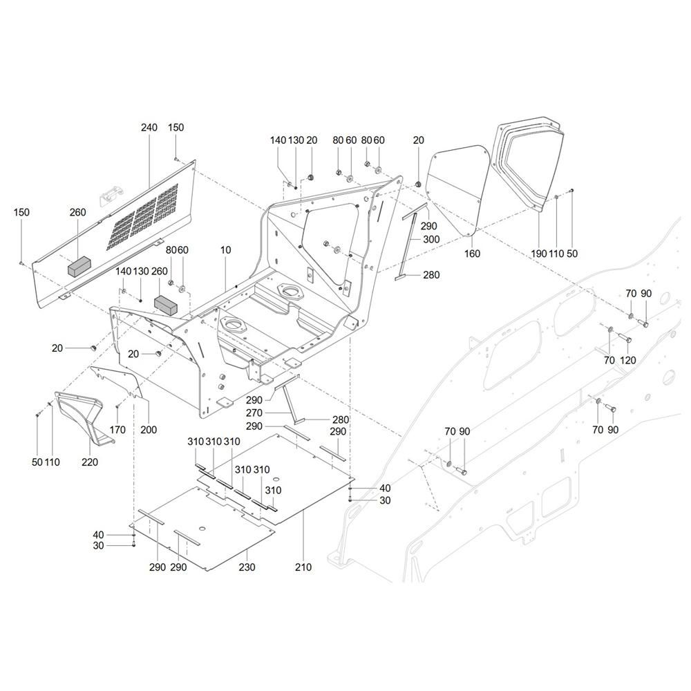 The Engine Box Assembly for the Wacker TH412 Telehandler includes key components essential for optimal machine performance. Designed to house and protect the engine, this assembly ensures efficient operation and longevity. Typical parts may include gaskets, seals, and brackets, all contributing to the telehandler's reliable function. Genuine Wacker Neuson parts guarantee compatibility and durability.