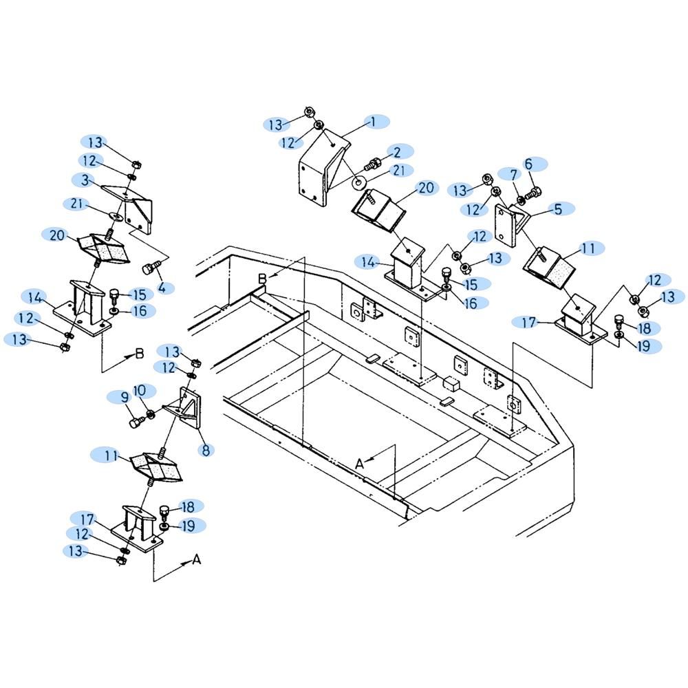 The Engine Bracket Assembly for the Kubota KH60 Mini Excavator is designed to secure the engine in place, ensuring stability and reducing vibration during operation. This assembly includes genuine Kubota parts, providing reliable support and enhancing the machine's performance. Essential for maintaining the structural integrity of the excavator, it is crucial for efficient and safe operation.