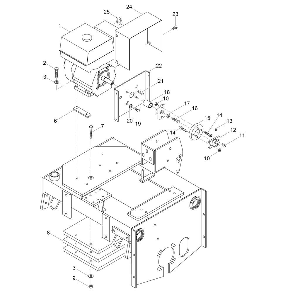 The Engine Compartment Assembly for the Wacker RS800V Roller includes key components to ensure optimal performance and longevity. This assembly is crucial for housing and protecting the engine, facilitating efficient operation. Typical parts may include mounts, brackets, and covers, all designed to fit seamlessly within the Wacker Neuson Single Drum Roller.