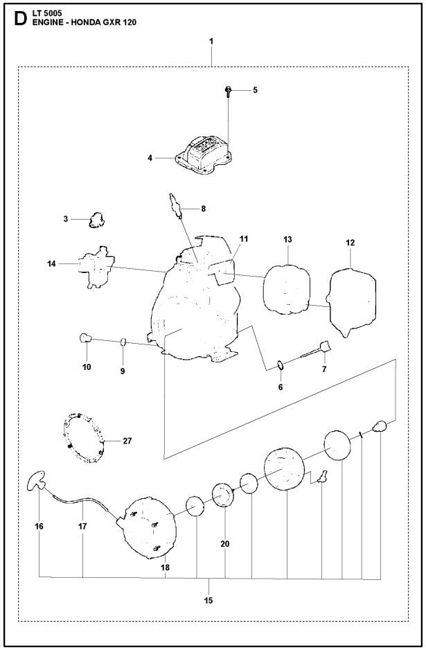 The engine for the Husqvarna LT5005 Trench Rammer is designed to deliver reliable power and performance in demanding construction environments. This genuine Husqvarna component ensures optimal operation and longevity of the trench rammer. It is essential for maintaining the machine's efficiency and effectiveness in compacting soil and other materials.