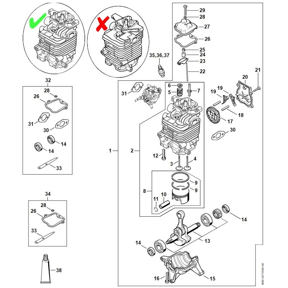 The engine for the Stihl BR 700 Leaf Blower is designed to deliver powerful performance and reliability. This assembly includes both genuine and non-genuine parts, ensuring compatibility and choice for maintenance and repair. Key components such as pistons, cylinders, and spark plugs are available to keep your blower in optimal condition.
