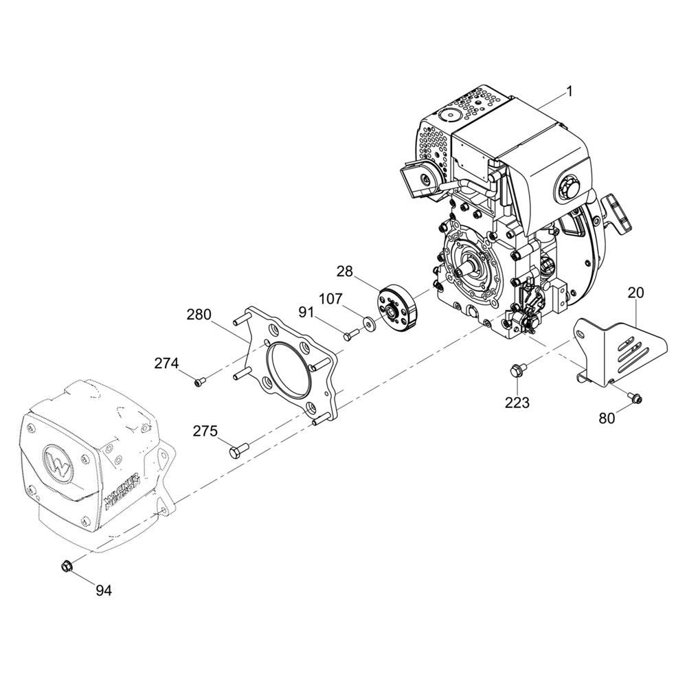The Engine Guard Assembly for the Wacker DS70 Trench Rammer is designed to protect the engine from damage during operation. This assembly includes components such as guards, brackets, and fasteners, ensuring the engine remains shielded from debris and impacts. Essential for maintaining the durability and performance of your Wacker Neuson equipment.