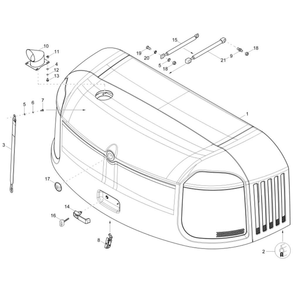 The Engine Hood Assembly for the Wacker ET145 Mini Excavator is designed to protect the engine and enhance the machine's durability. This assembly includes components such as hinges, latches, and seals, ensuring secure coverage and easy access for maintenance. Genuine Wacker Neuson parts guarantee compatibility and reliability.