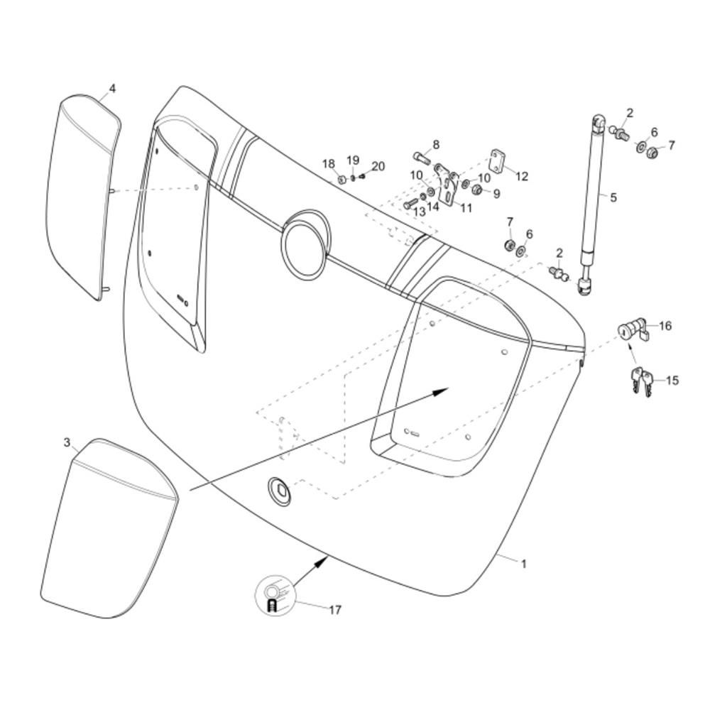 The Engine Hood Assembly for the Wacker ET18 Mini Excavator is designed to protect the engine components and provide easy access for maintenance. This assembly includes essential parts such as hinges, latches, and seals, ensuring the engine is shielded from debris and weather conditions. Suitable for routine checks and repairs, it helps maintain the excavator's efficiency and longevity.
