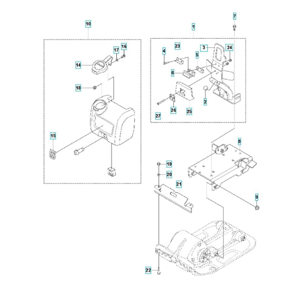 The Engine Plate Assembly for the Husqvarna LF 60 LA Compactor includes key components essential for optimal operation. Designed to ensure efficient power transfer and stability, this assembly helps maintain the compactor's performance. Typical components include mounting plates, bolts, and vibration dampers, all contributing to the machine's reliability and longevity.