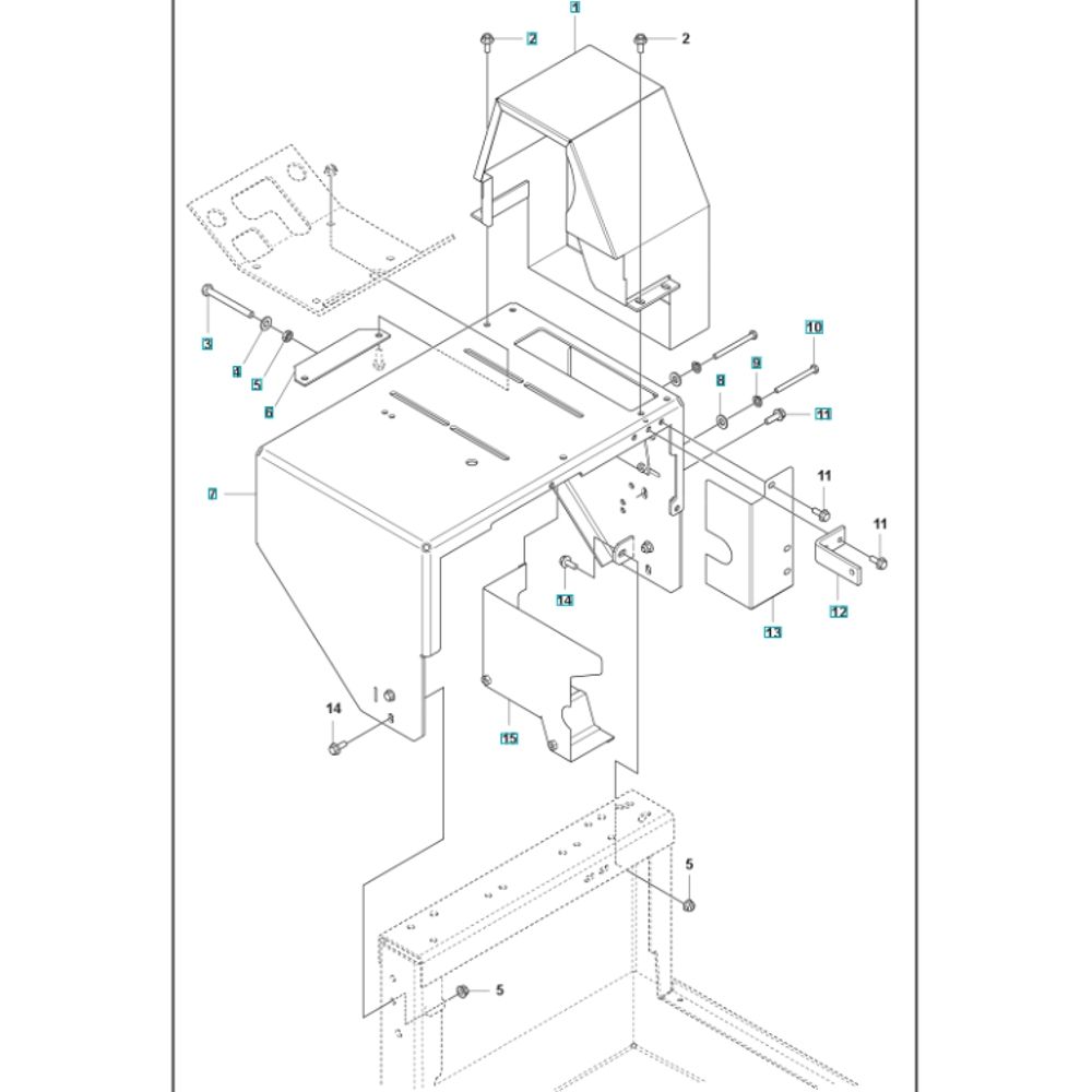 The Engine Plate Assembly for the Husqvarna MS 610 G Masonry Saw is designed to ensure optimal performance and longevity. This assembly includes key components that support the engine's operation, such as mounting brackets and fasteners. Genuine Husqvarna parts are used to maintain the integrity and reliability of the saw, making it suitable for demanding masonry tasks.