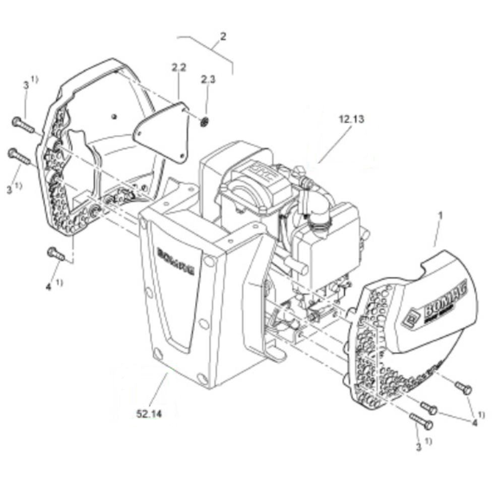 The Engine Protector Assembly for Bomag BT60 Rammers is designed to safeguard the engine from potential damage during operation. It includes components such as guards, brackets, and fasteners, ensuring the engine remains secure and protected from debris and impact. This assembly is essential for maintaining the durability and efficiency of Bomag BT60 Rammers.
