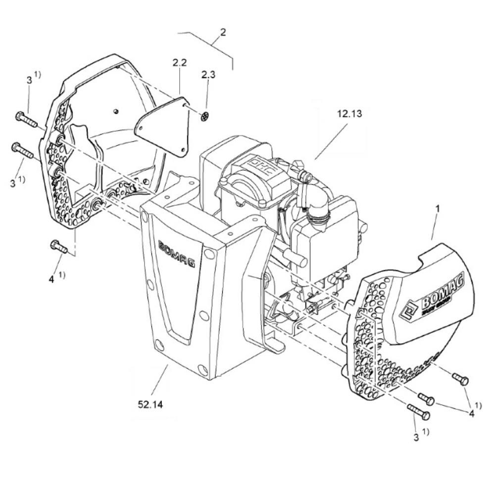 The Engine Protector for Bomag BT65 Rammers ensures optimal protection and longevity of the engine. Designed specifically for serial numbers 101541551001 to 101541555723, it safeguards against debris and wear, maintaining efficient operation. Genuine Bomag parts guarantee compatibility and reliability, essential for heavy-duty construction tasks.