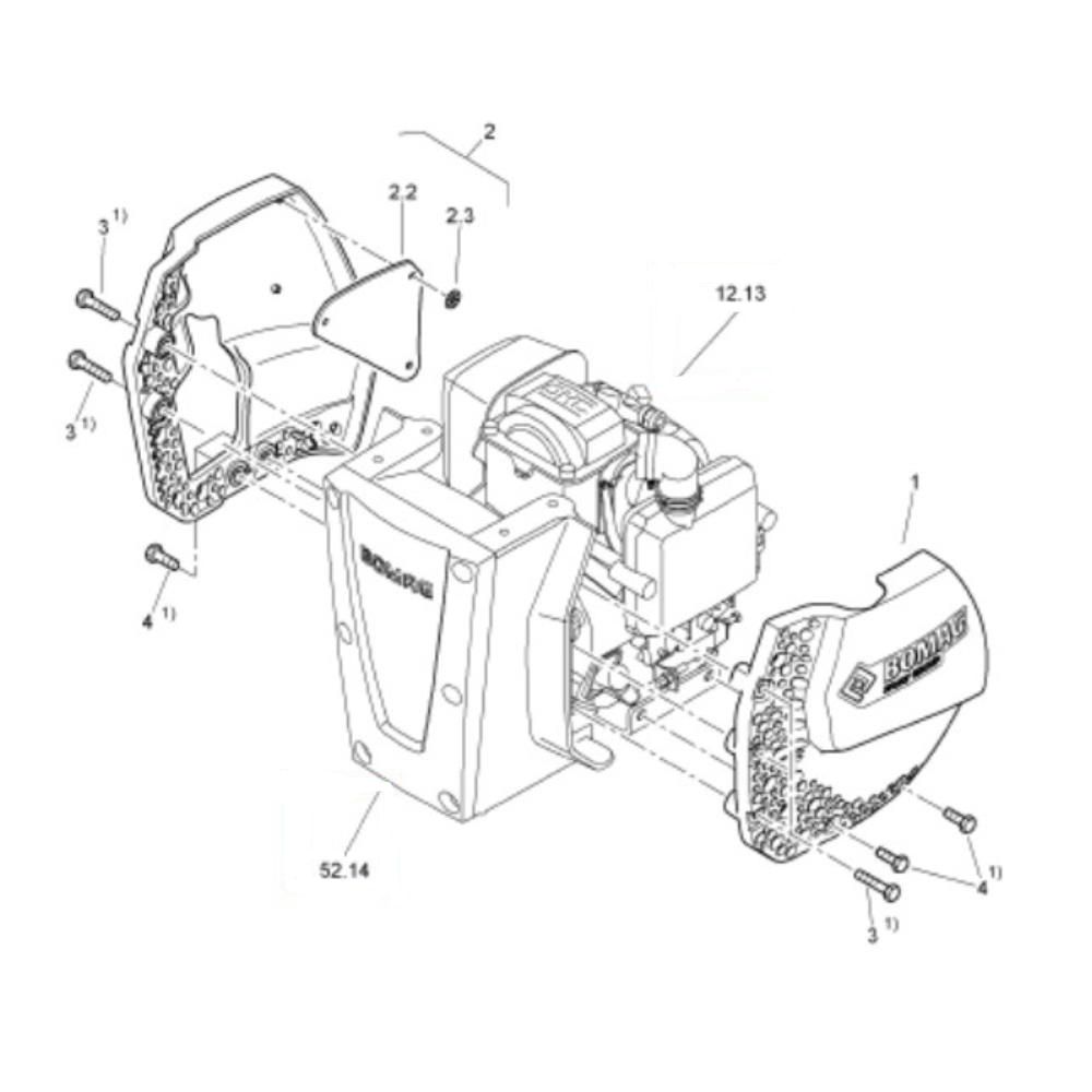 The Engine Protector Assembly for Bomag BT60 Rammers is designed to safeguard the engine from damage during operation. This assembly includes components such as guards, brackets, and fasteners, ensuring the engine remains protected from debris and impact. Suitable for serial numbers 101541711001 to 101541712711, it helps maintain the machine's reliability and longevity.