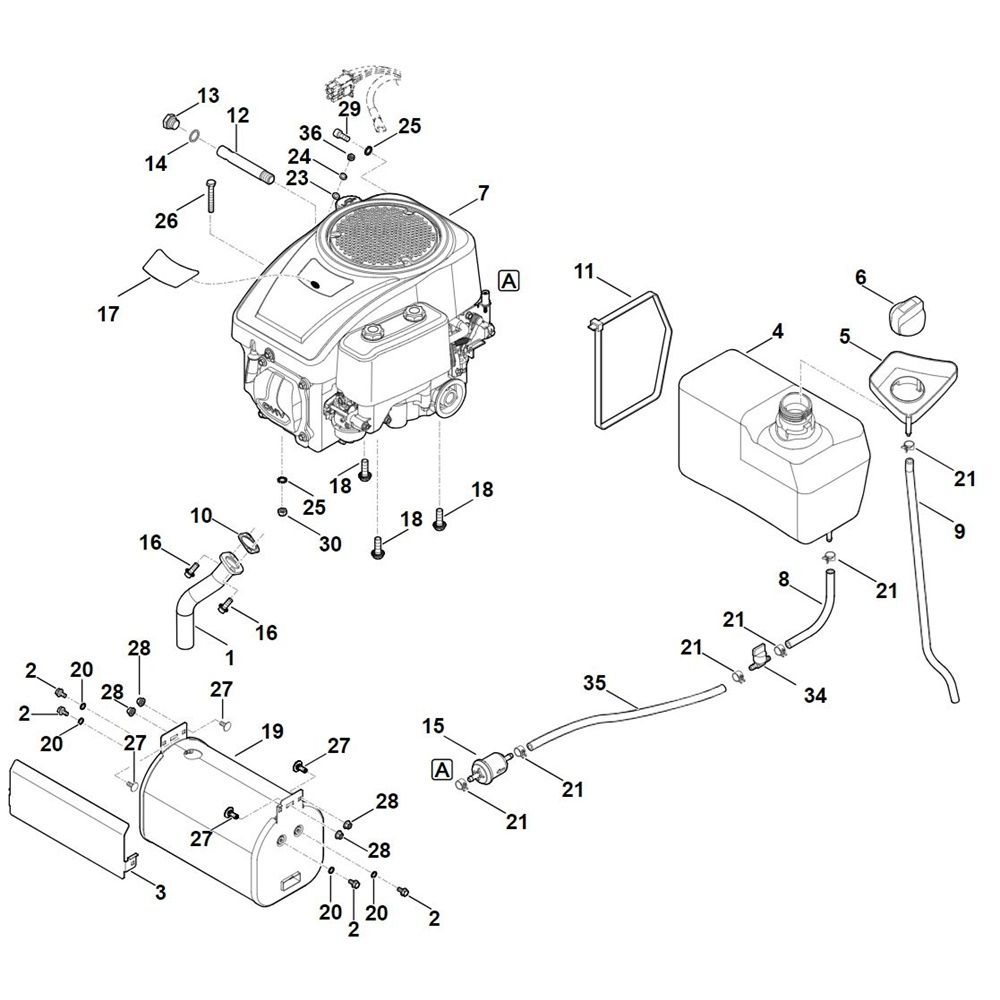 The Engine and Tank assembly for the Stihl RT 5097.1 Ride on Mower includes essential components to ensure optimal performance and longevity. This assembly is crucial for maintaining the mower's efficiency, providing reliable power and fuel storage. Available components may include gaskets, hoses, and fittings, designed to fit seamlessly with the Stihl RT 5097.1 model.