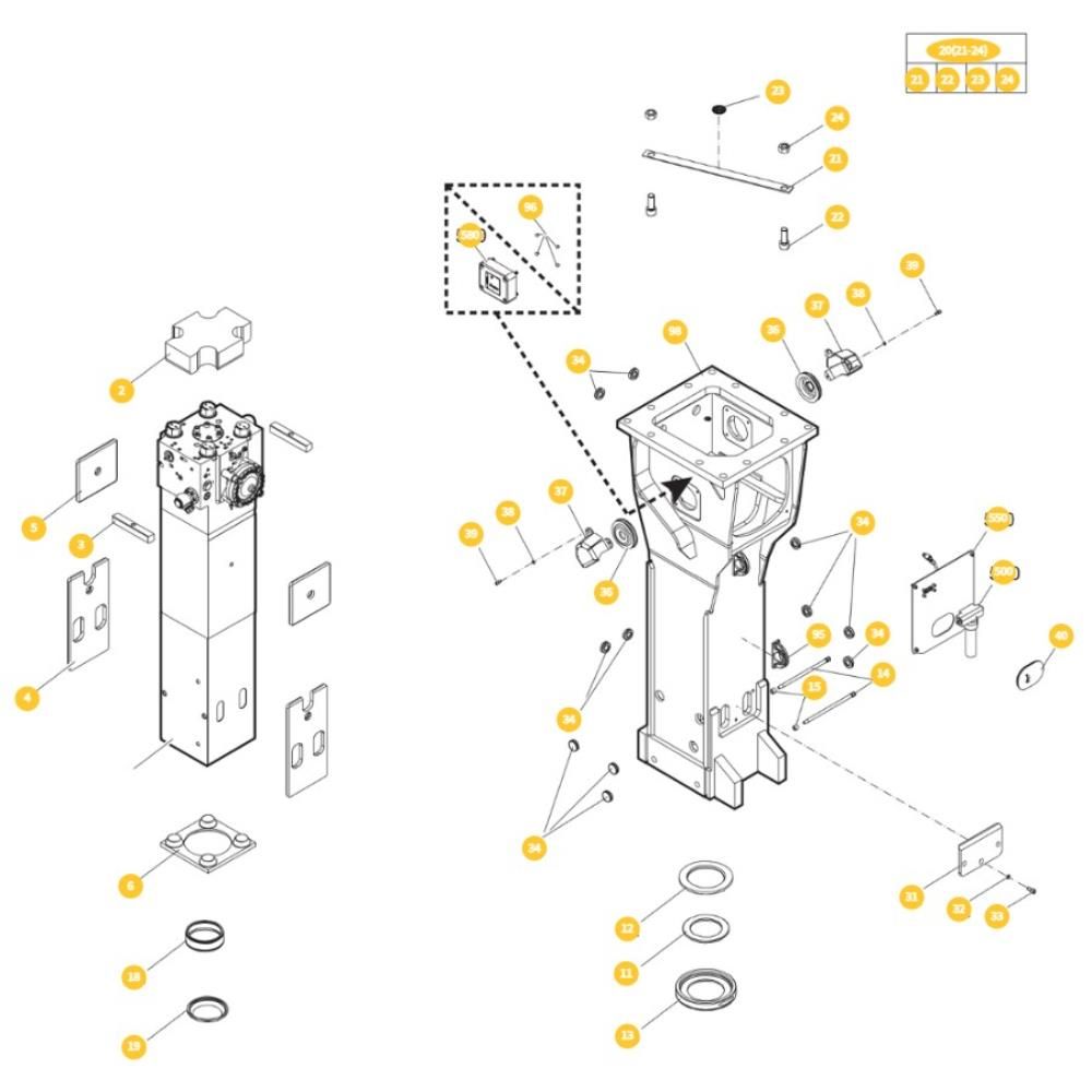 The Epiroc HB 410 HD Hydraulic Breaker Assembly is designed for robust performance in demanding conditions. This assembly includes genuine Epiroc spare parts, ensuring compatibility and reliability. Key components such as pistons, seals, and bushings work together to deliver efficient breaking power, reducing wear and extending the lifespan of the equipment.