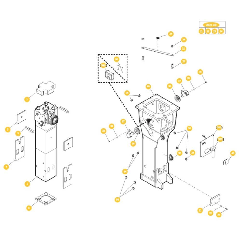 The Epiroc HB 410 Hydraulic Breaker Assembly is designed for efficient demolition and rock breaking tasks. This assembly includes genuine Epiroc spare parts, ensuring optimal performance and longevity. Components such as pistons, seals, and bushings are available to maintain the breaker's functionality and reliability. Suitable for heavy-duty applications, it supports various construction and mining operations.