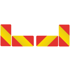 Marking safety areas on plant and site vehicles, highlighting restricted or hazard zones on trailers and implements, improving visibility on compact tractors and ride-on mowers, and replacing damaged or faded boards during compliance checks. Commonly used on construction sites, highways support vehicles, depots, municipal fleets, and large gardens or estates.